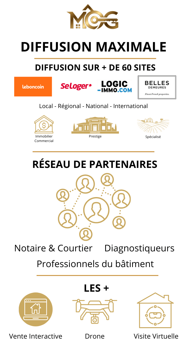 Shooting photo professionnel et rédaction d'une annonce optimisée selon le profil acquéreur, possibilité de visite virtuelle ( sous conditions ). Diffusion immédiate avec remontée automatique pour une visibilité maximale dès le premier jour.